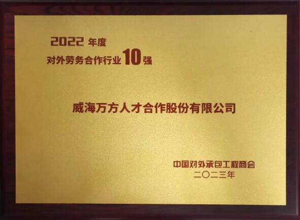 熱烈祝賀威海萬方人才公司榮獲“2022年對外勞務合作行業(yè)十強企業(yè)”和“2022年中日人才合作十強企業(yè)”。